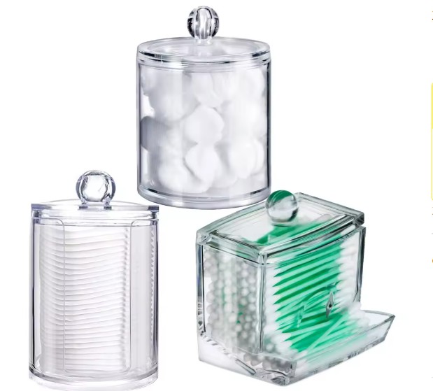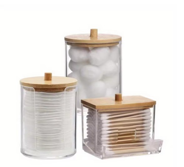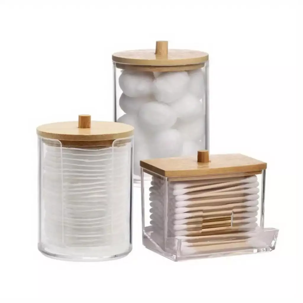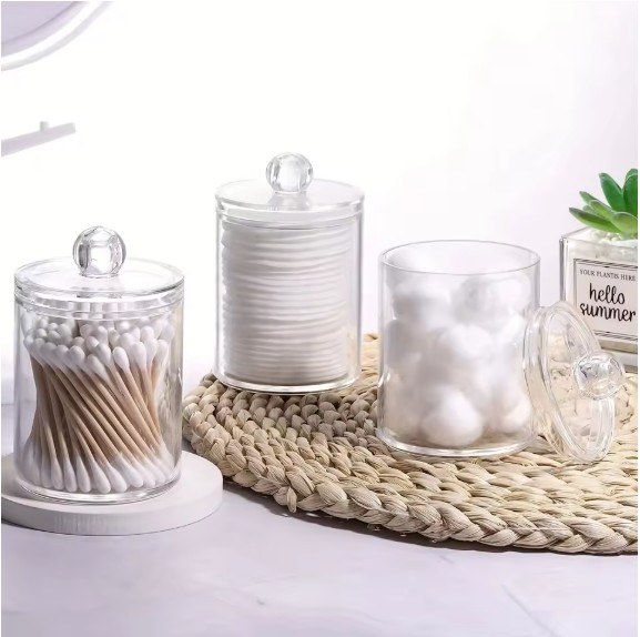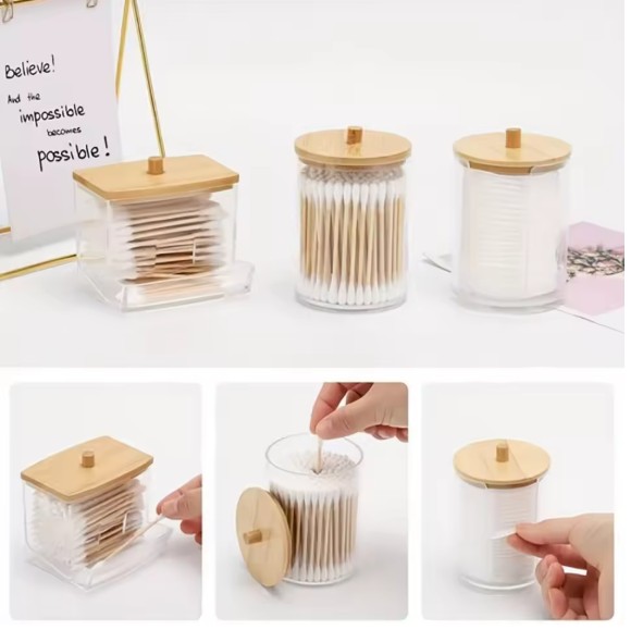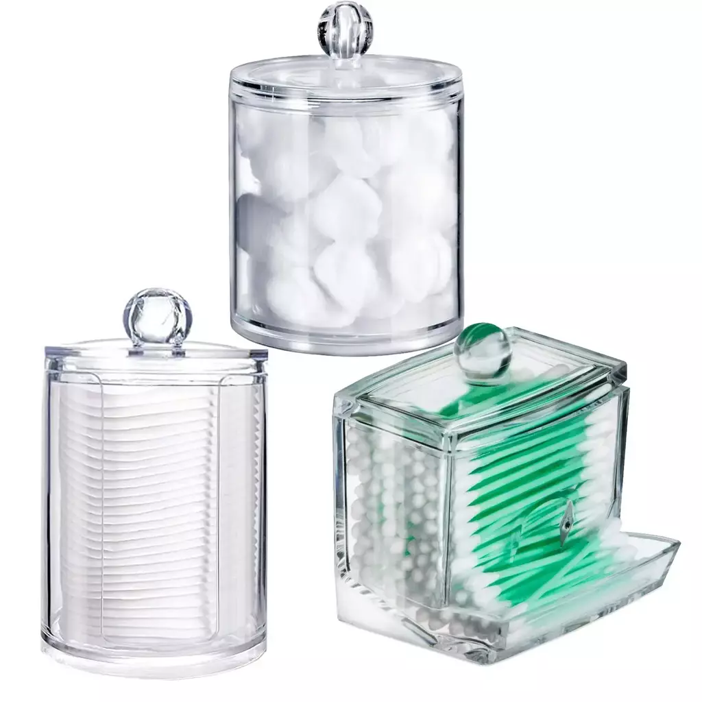 Com linhas suaves e formato compacto, esses recipientes são perfeitos para armazenar cotonetes, discos de algodão, esponjinhas de maquiagem, lenços e outros pequenos acessórios de beleza ou higiene.