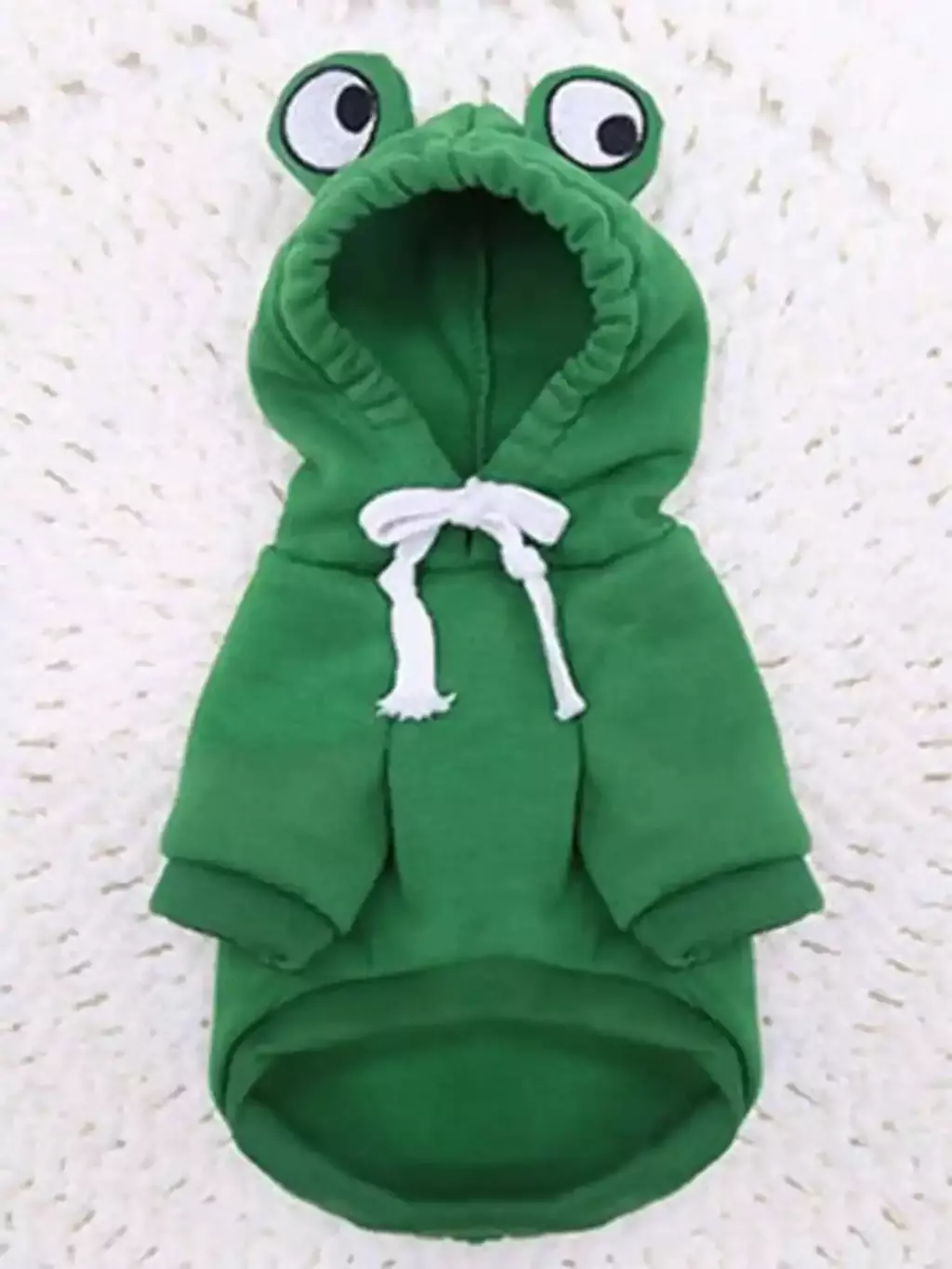 Design Encantador: Capuz verde em formato de rã que deixa seu cão adorável e estiloso.