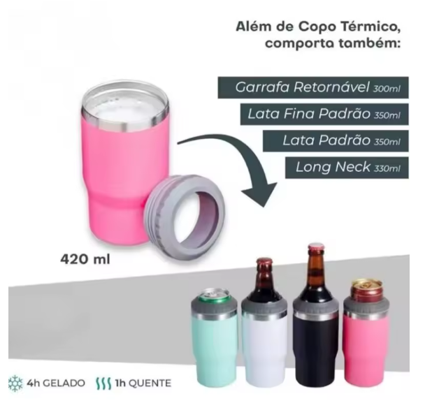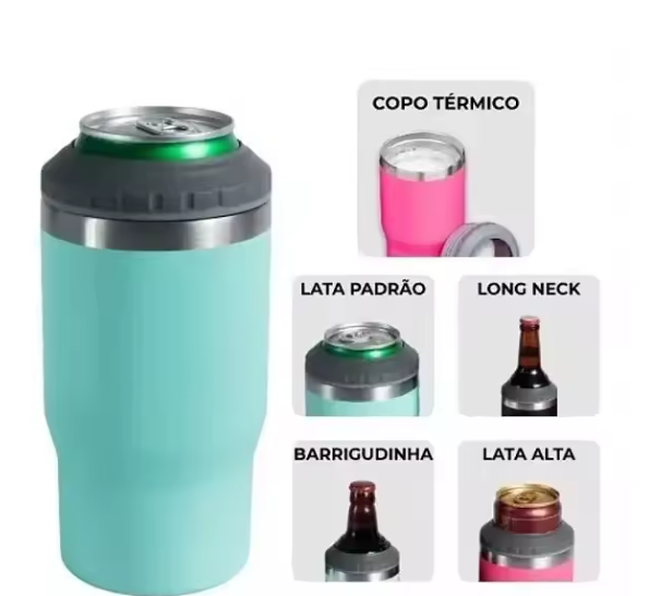 Funções: 5 em 1 (Copo térmico, Lata comum, Lata alta, Long Neck, Barrigudinha)