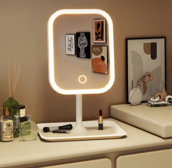 Transforme sua rotina de maquiagem com LumiMirror Pro, o espelho de vaidade moderno que combina funcionalidade, estilo e iluminação perfeita para você se sentir confiante em cada detalhe.
