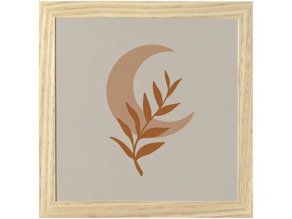 O design “Lua e Folha” simboliza o equilíbrio entre natureza e serenidade, tornando o LunarLeaf um quadro perfeito para quem busca compor ambientes inspiradores e cheios de vida.