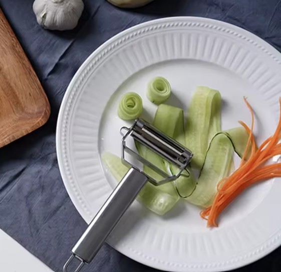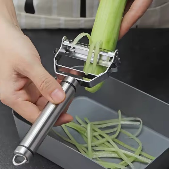 Transforme o preparo das suas refeições com o PeelSwift, o descascador multifuncional de aço inoxidável que une eficiência, praticidade e durabilidade em um design moderno e ergonômico.