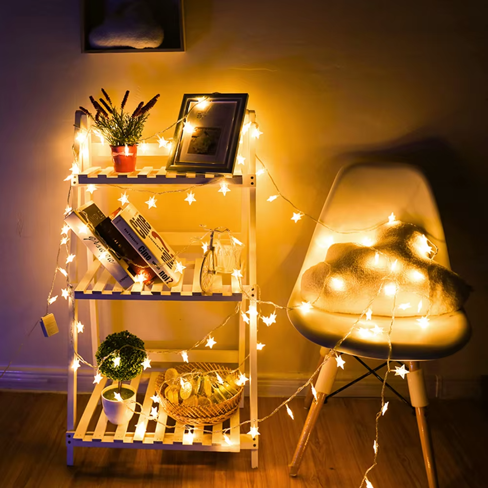Crie uma atmosfera acolhedora, elegante e mágica em qualquer ambiente com a StarGlow LED, a guirlanda luminosa em formato de estrela perfeita para decoração de Natal, festas, quartos e eventos especiais. Com LEDs brilhantes, baixo consumo de energia e diferentes opções de comprimento, ela é ideal para transformar qualquer espaço em um cenário encantador.