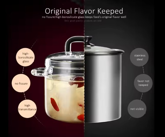 Feito com vidro borossilicato de alta resistência térmica, ele suporta altas temperaturas, sendo ideal para cozimento a vapor, preparo de sopas, sobremesas e armazenamento de alimentos com total segurança.